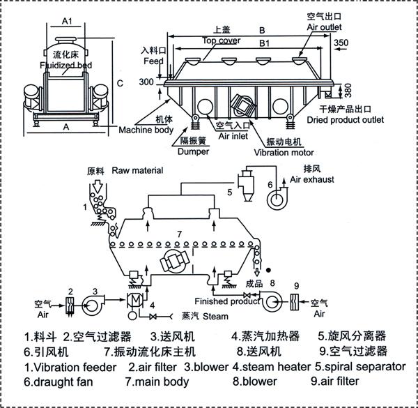 振動(dòng)源采用振動(dòng)電機(jī)驅(qū)動(dòng),運(yùn)轉(zhuǎn)平穩(wěn),維修方便,噪音低,壽命長(zhǎng)。流態(tài)化勻稱,無(wú)死空隙和吹穿現(xiàn)象,可以獲得均勻的干燥、冷卻制品??烧{(diào)性好,適應(yīng)面寬。料層厚度和機(jī)內(nèi)移動(dòng)速度以及全振幅變更均可實(shí)現(xiàn)無(wú)極調(diào)節(jié)。對(duì)物料表面的損傷小,可用于易碎物料的干燥,物料顆粒不規(guī)則時(shí)亦不影響工作效果。采用全封閉式的結(jié)構(gòu),有效地防止了物料與空氣間空叉感染,作業(yè)環(huán)境清潔。機(jī)械效率與熱效率高,節(jié)能效果好,比一般干燥裝置可節(jié)能30%-60%。