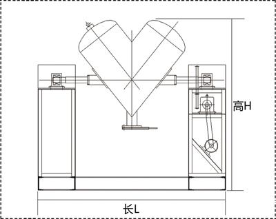 該機(jī)混合筒采用V型不對(duì)稱筒身,在筒身頂部裝有快開式旋蓋,便于加料。筒身底部裝有轉(zhuǎn)閥,密封性好,出料方便。加料從頂部加入后旋緊快開旋蓋手柄,由時(shí)間繼電器設(shè)定混合時(shí)間,按下起動(dòng)按鈕,混合筒沿軸線旋轉(zhuǎn),物料在V型筒體內(nèi)均勻混合,到設(shè)定時(shí)間后,電機(jī)自動(dòng)停止運(yùn)轉(zhuǎn),點(diǎn)動(dòng)起動(dòng),停止按鈕,使出料閥門轉(zhuǎn)至向下位置,打開蝶閥出料。