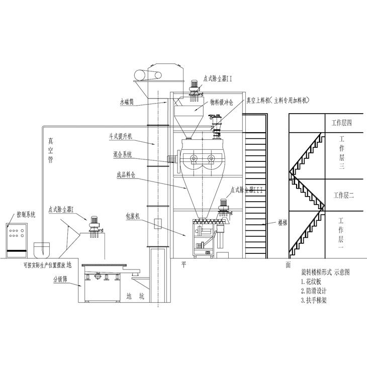 1、本系統(tǒng)配備完善的除塵設(shè)備,投料和包裝粉塵非常少,改善工人的勞動(dòng)環(huán)境,提高工人的生產(chǎn)效率。